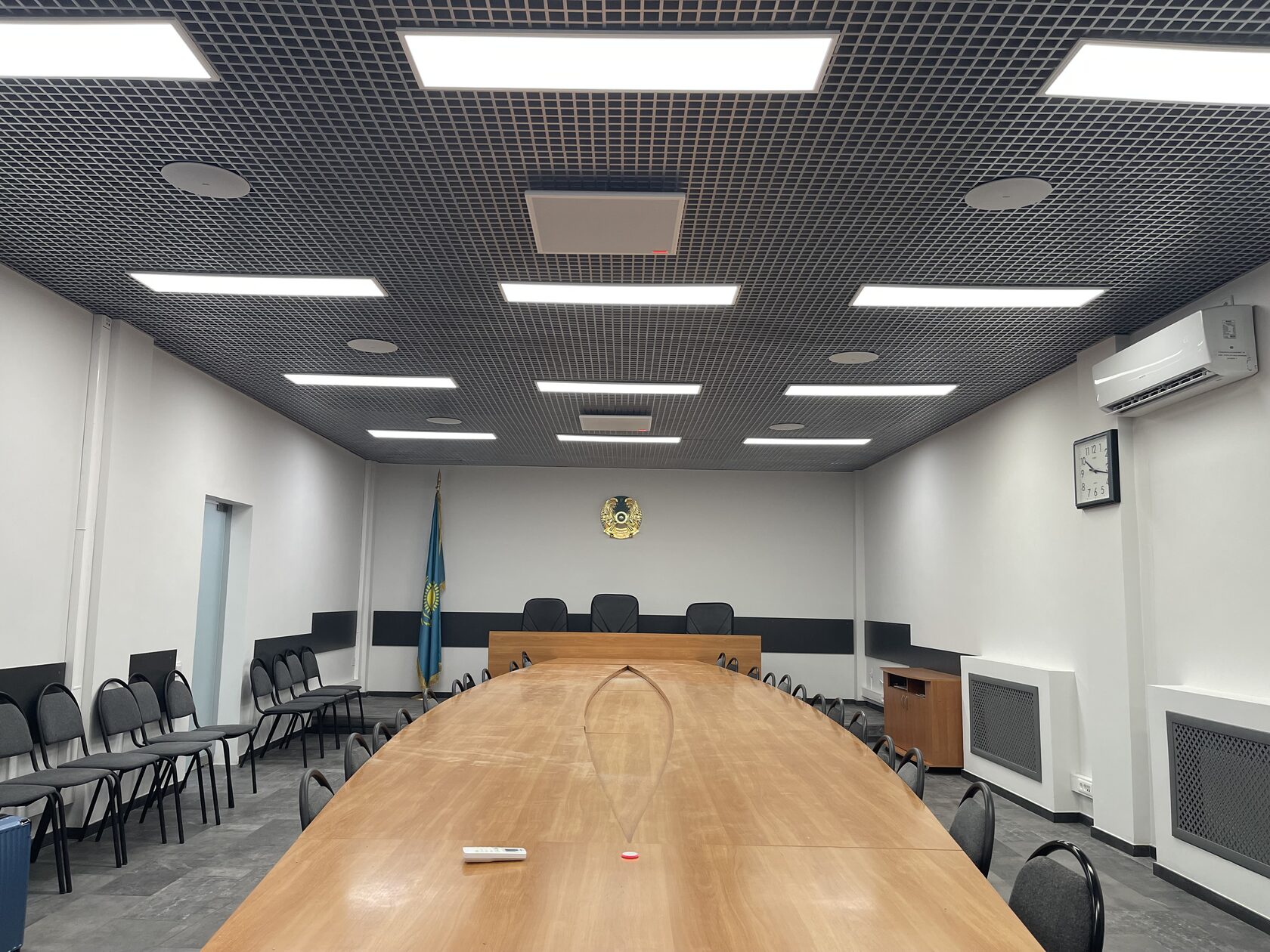 Перед заказчиком стояла амбициозная задача — оснастить офисы в г. Актобе и с. Коктау современными переговорными пространствами. Основные требования включали обеспечение безупречного качества аудиосвязи во время совещаний, интеграцию с системами видеоконференцсвязи (ВКС), а также создание максимально комфортной среды для участников за счёт использования скрытых решений и автоматизированного управления.